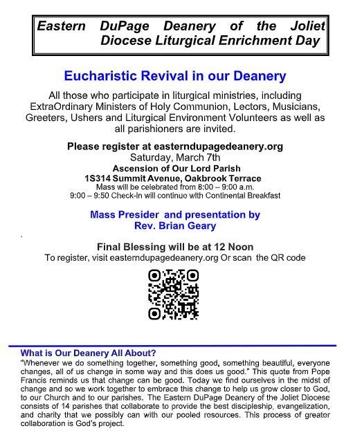 We are a welcoming Catholic community called by God to live out the message of Christ in love and service to all people. Our parish mission is: